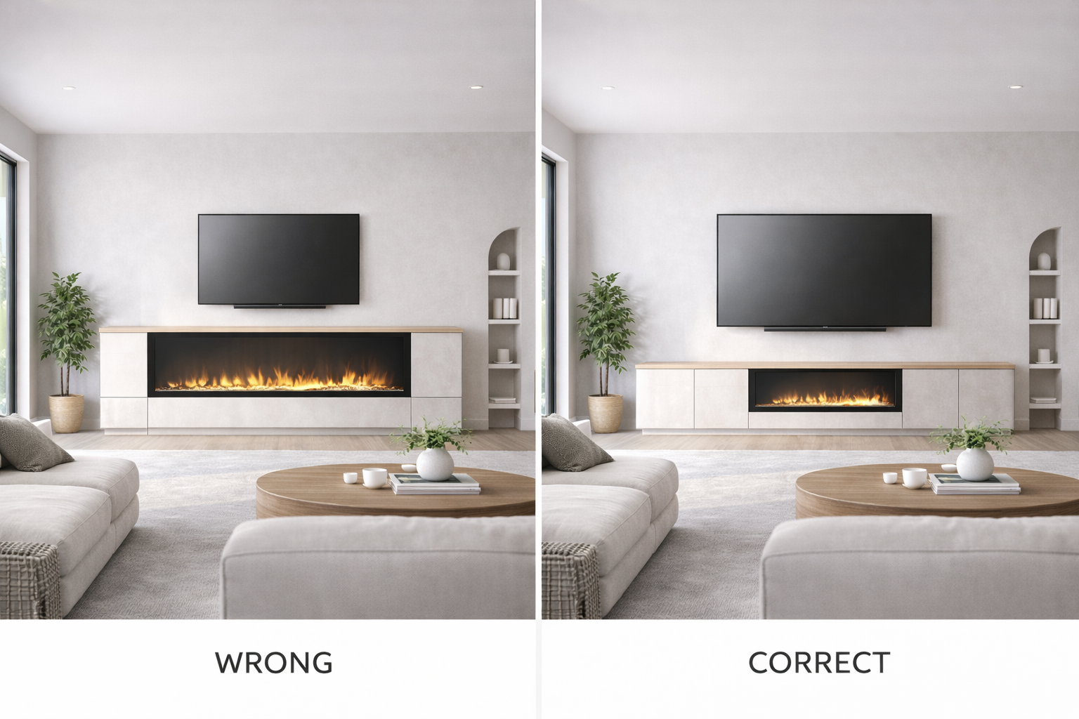 If the fireplace exceeds the TV width dramatically, visual balance breaks.