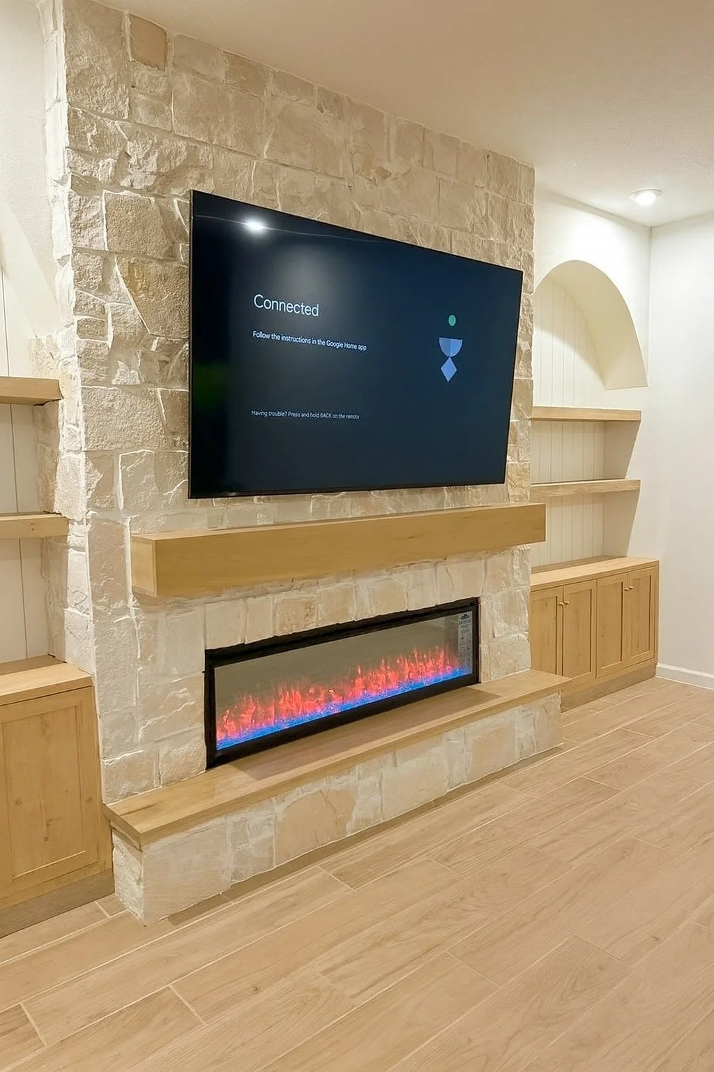 Custom Stone Fireplace TV Wall in Lakeland, FL | Modern Media Center Build-Out