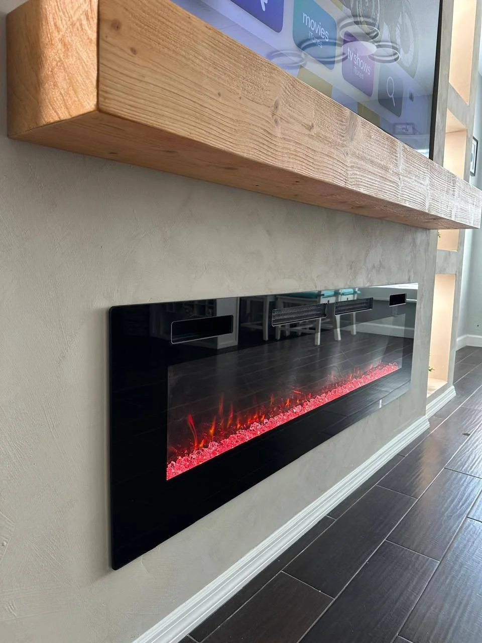 Flush-Mounted Electric Fireplace: Sleek, minimal design provides warmth and ambiance with a slim profile and glowing ember effect.