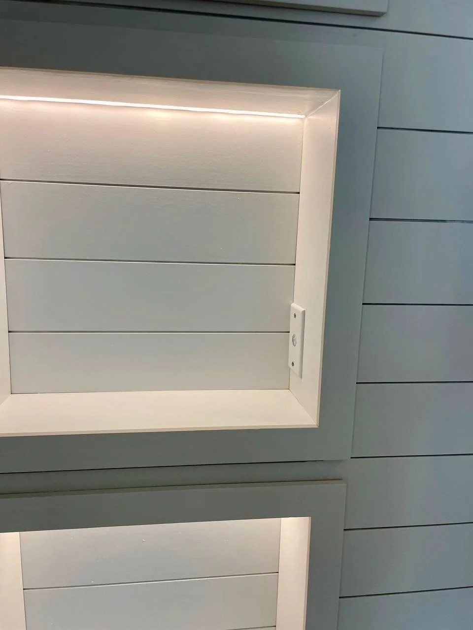 Shiplap Fireplace Media Wall with LED Niches in Bradenton, Florida