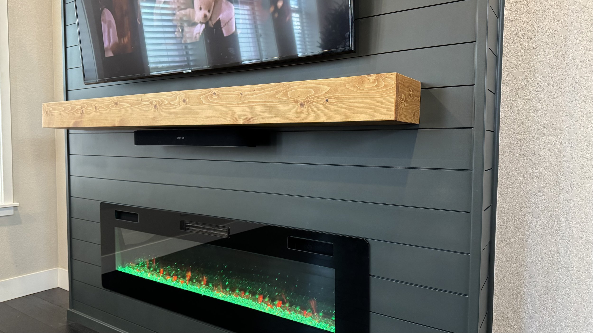 • Shiplap Fireplace Wall